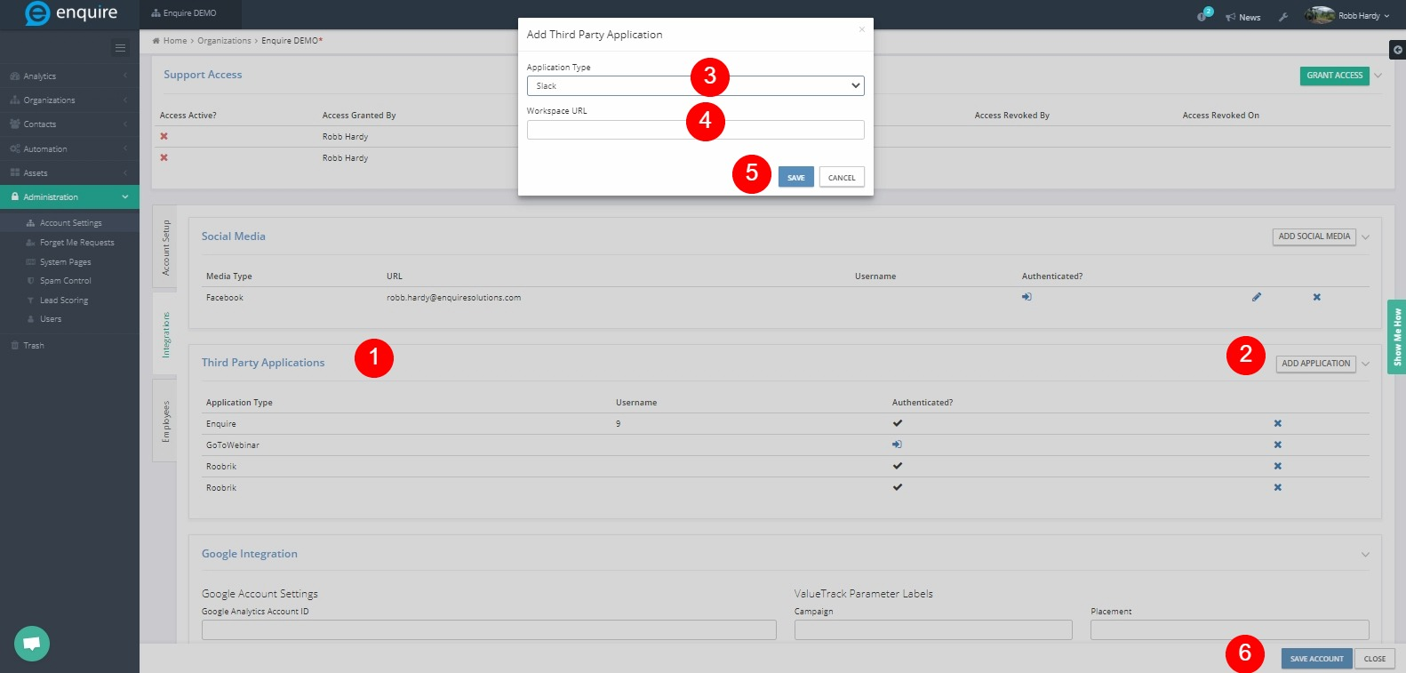 As an Administrator of Slack and Enquire MAP, log into the platform.