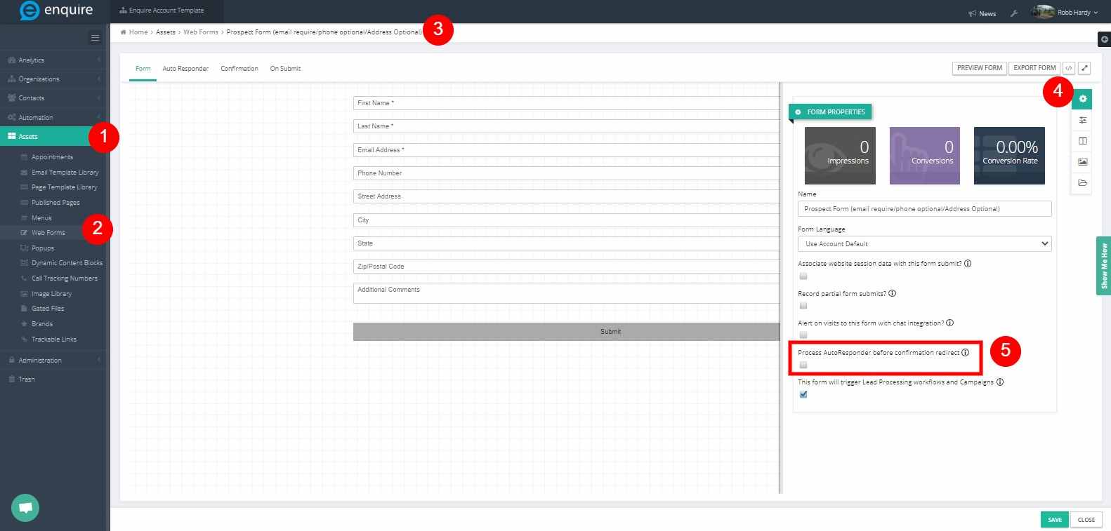 If using dynamic content based upon a form submit, often the User will want the logic in the auto responder to process before presenting the user a confirmation page. Enquire MAP enables setting the auto responder priority.
