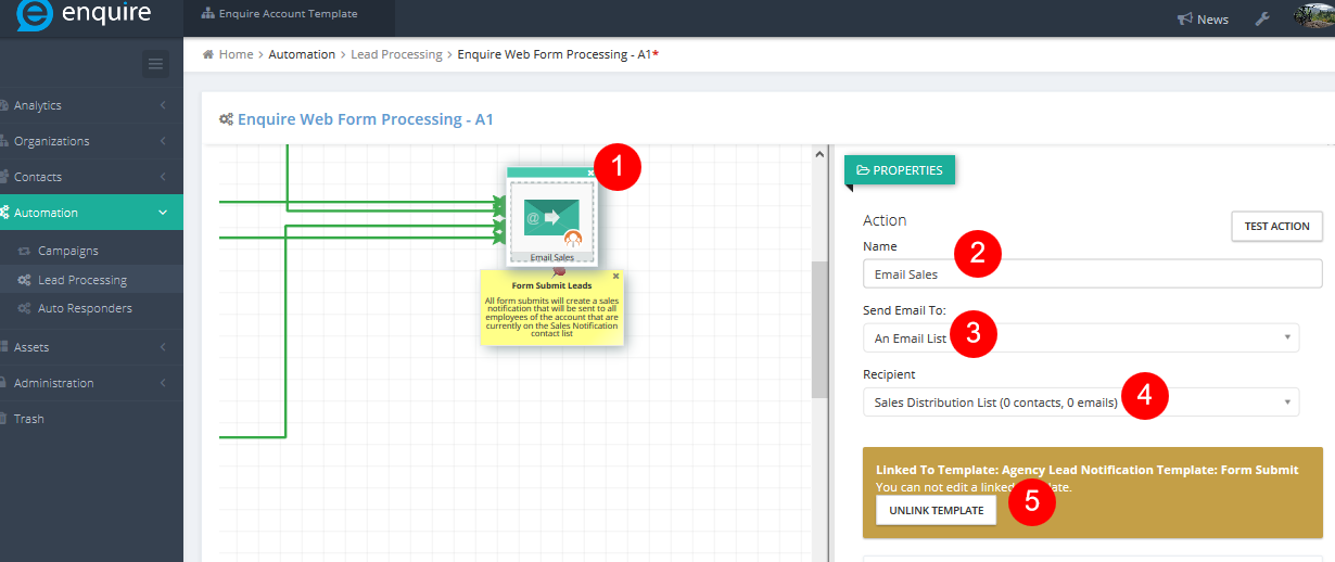 Every auto-responder starts as a linked email associated with the the global template. For every form/ landing page created, the default item will need to be deleted. Next from the menu, the user needs to: