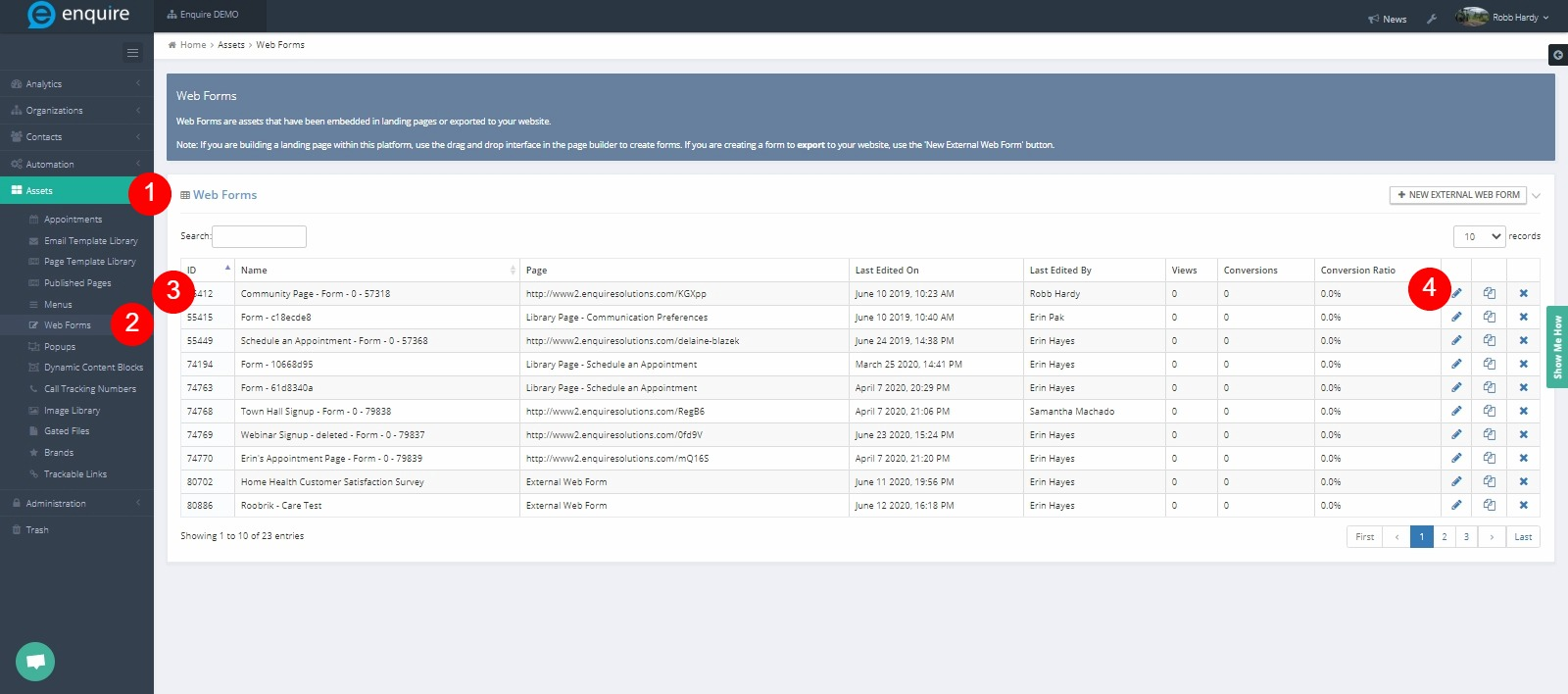 - Navigate to Assets > Web Forms > Choose a form > Edit