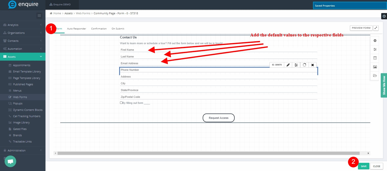 - In Enquire MAP, locate the form needing fields pre-populated. This could be a web form on a form on a landing page.