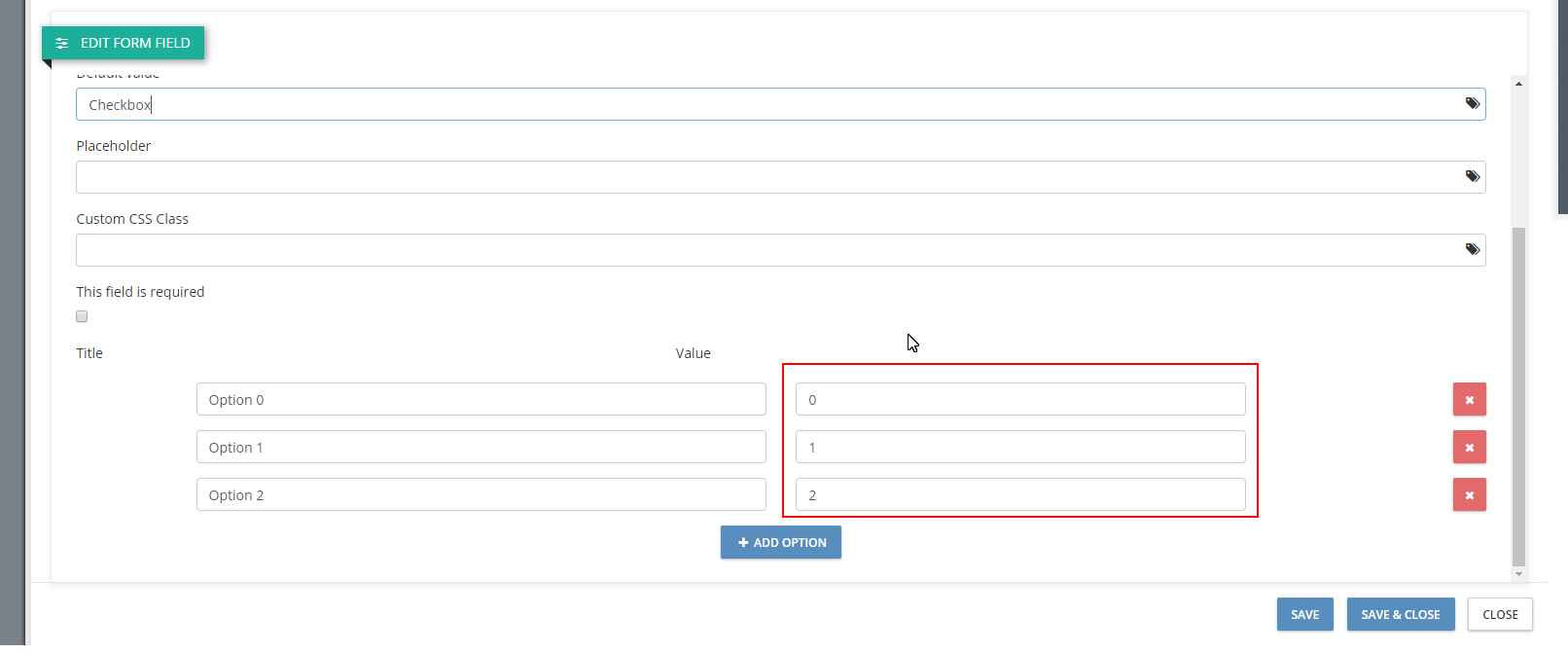 Step 2: Insert values for each option. Note that the values for the options should be different: