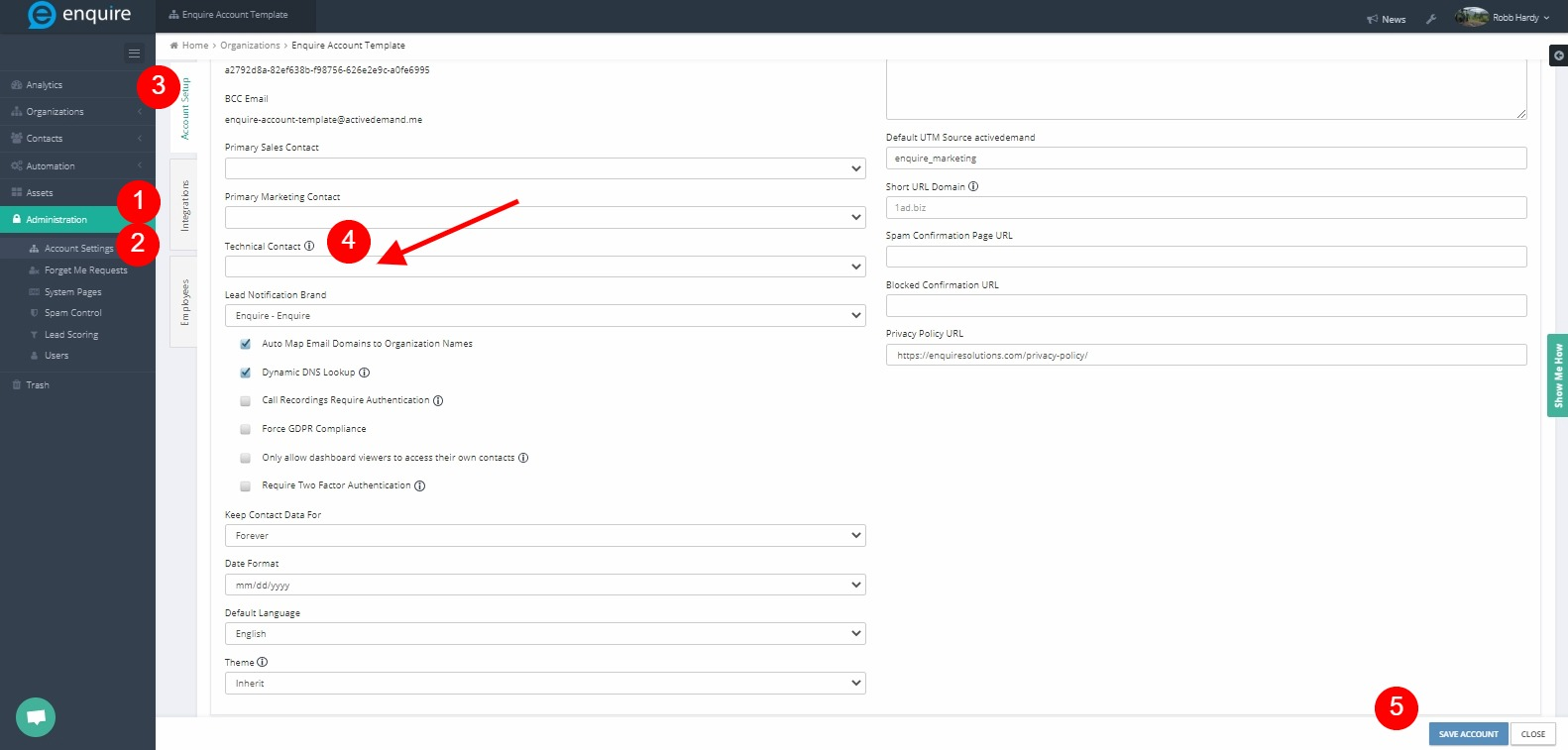 Enquire MAP informs the Technical Contact of the account about any errors happening to the Lead Notifications or Form Submits by sending automated error emails. It is important to set a Technical Contact by navigating to Administration > Account Settings > Account Setup tab to receive them. This is especially useful if the User is testing a new form or an update to the Sales Lead Notifications.