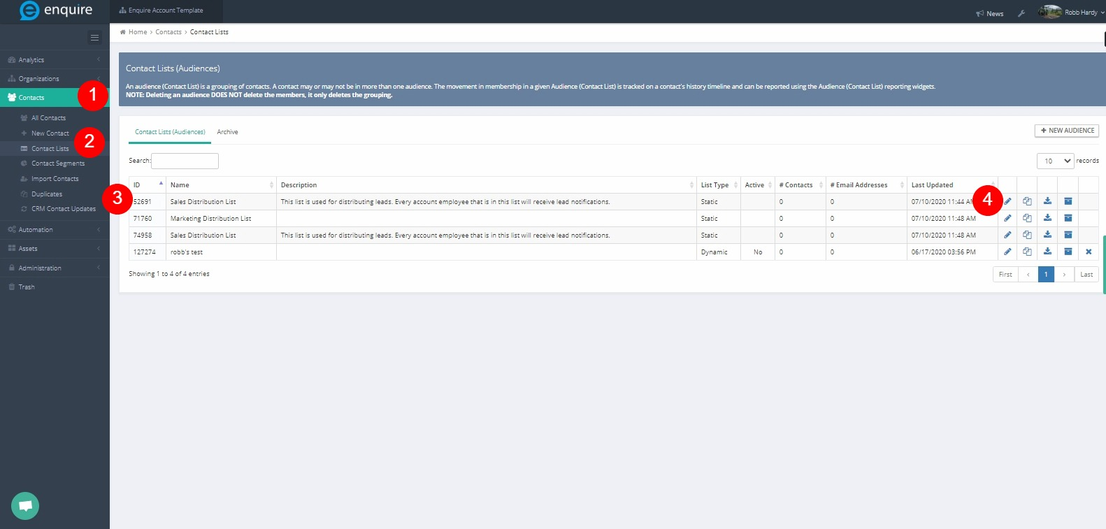 - Navigate to Contacts > Contact Lists, find the list Sales Notifications