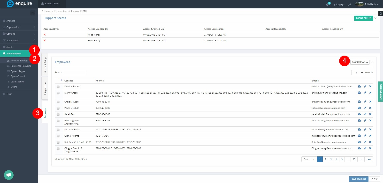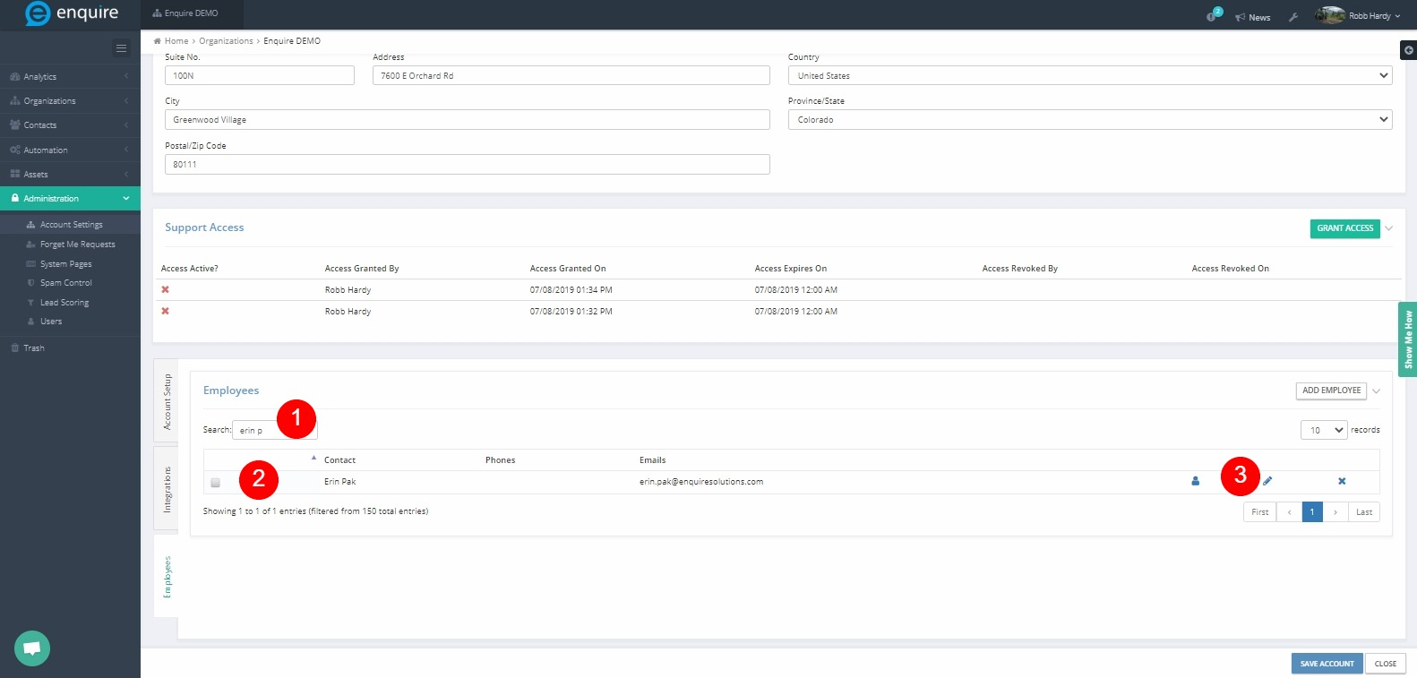 - First, add the Employee to Enquire MAP. All email tracking using this method requires an Employee contact to exist in Enquire MAP. The employee does not need to have a login account, but the configuration for polling the IMAP server is done on the employee contact edit screen.