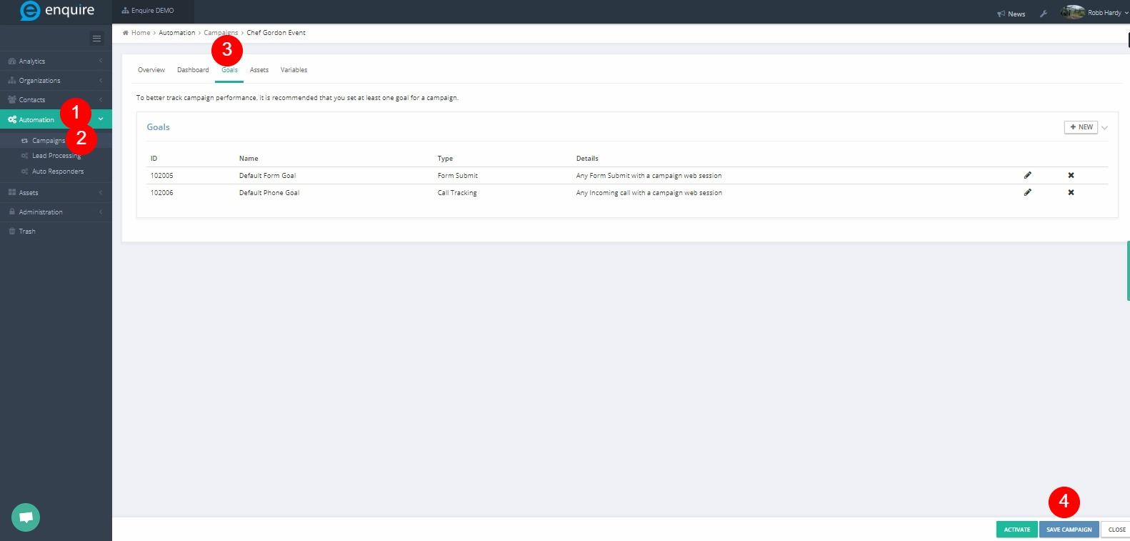 Tracking Campaign Goals in Enquire MAP