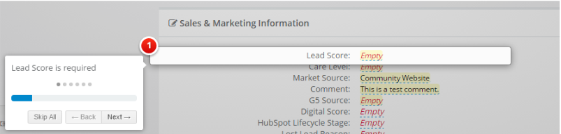 The required fields will populate per the screenshots below when accessing a leads profile.