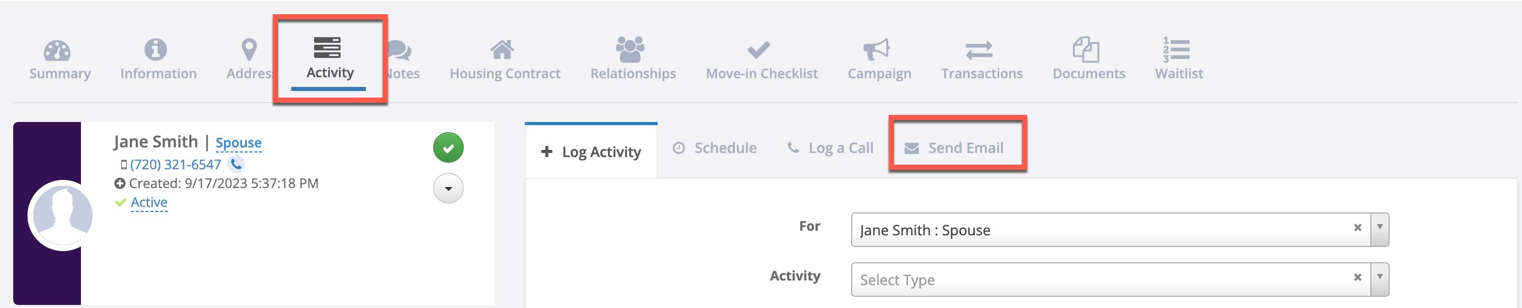 Step 1: Navigate to an Individual's profile and click the Activity button along the top of the profile