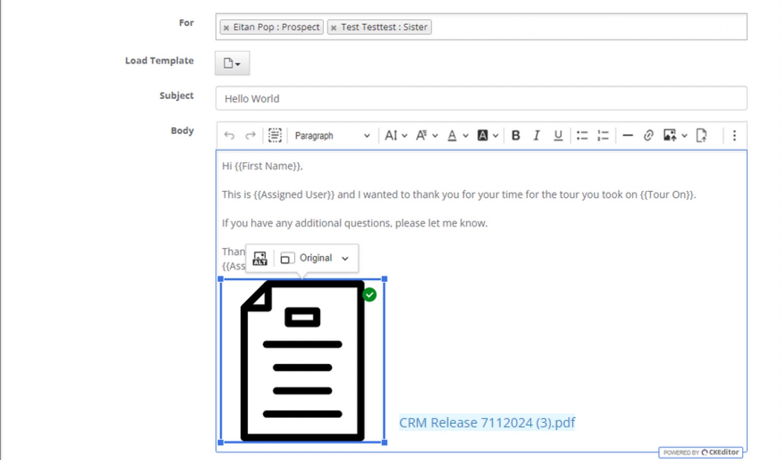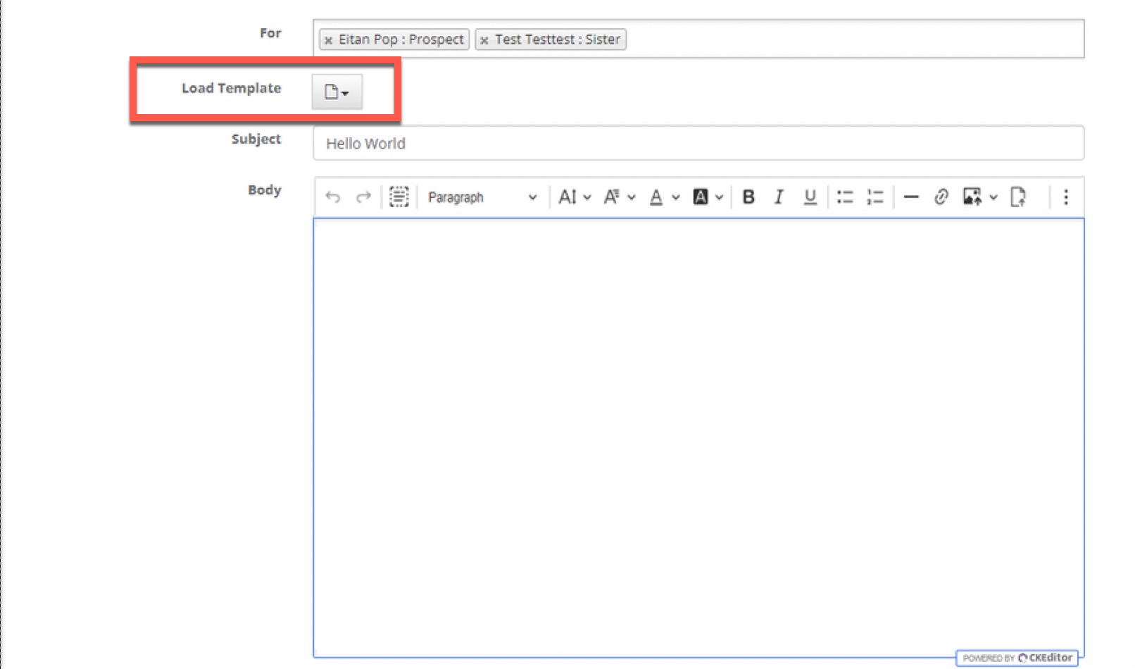 Step 5: Choosing your template will then auto populate the Subject and Body