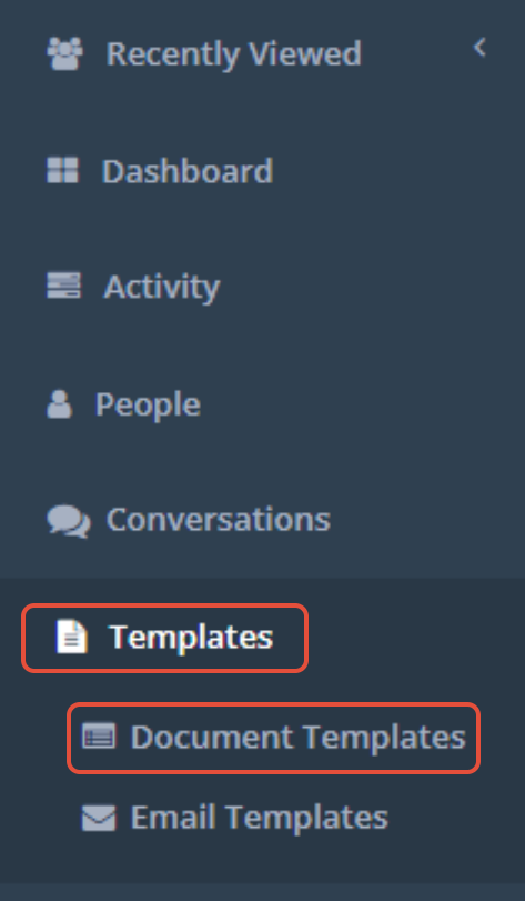 Step 1: Click Templates on the left hand menu then click Document Templates