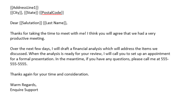 Template Merging allows you to easily create documents using the fields from your database in Enquire CRM.