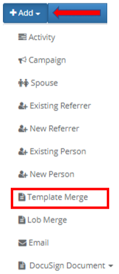 Step 1: Navigate to the profile you would like to send your document to and click the Add button in the top right and find template merge