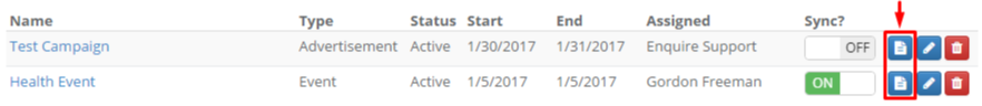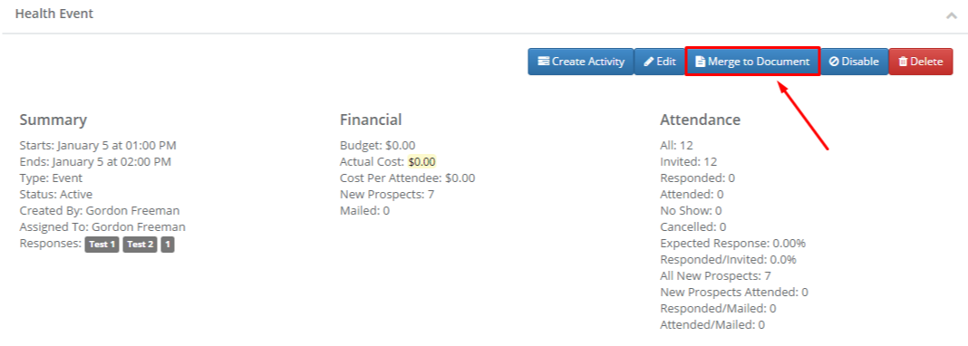 Step 2: Click the blue document icon to the right of a campaign or click on the name of a campaign and click the blue Merge to Document button