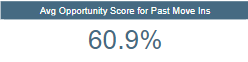 Across all communities, the average score for residents who move in is 69.2. The average score for prospects who eventually become lost leads is 15.6. The report includes the average opportunity score for your company or community. You can use this average as a benchmark to judge your current leads.