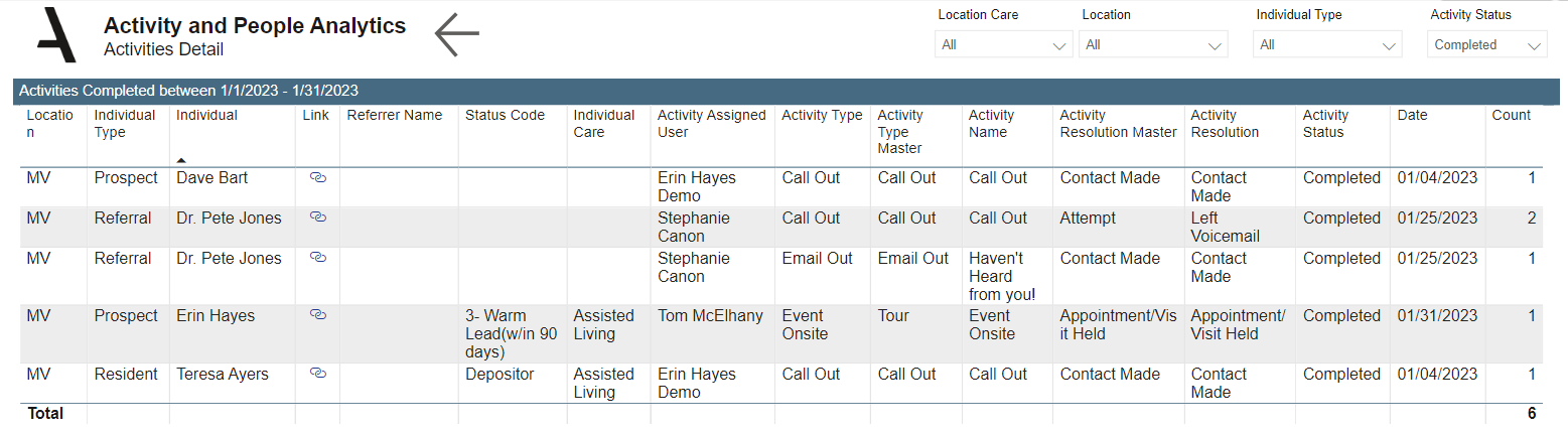 Once drilled through, a list will appear for those individuals that fall under that category.