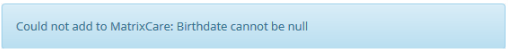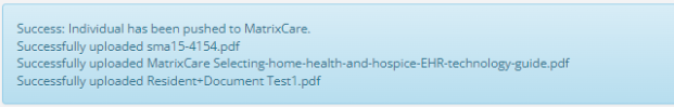 If all required information is entered, you will receive a blue success notification letting you know the individual was successfully sent to MatrixCare: