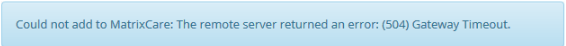 You may see the following error if something with the integration wasn't properly set up or there is trouble with the connection between Enquire and MatrixCare:
