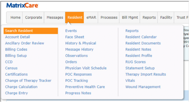 Locate the Resident in MatrixCare