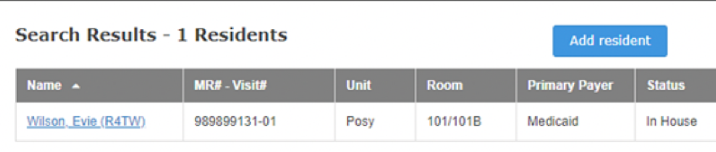 Step 3: Your resident will appear on the Search Results page.