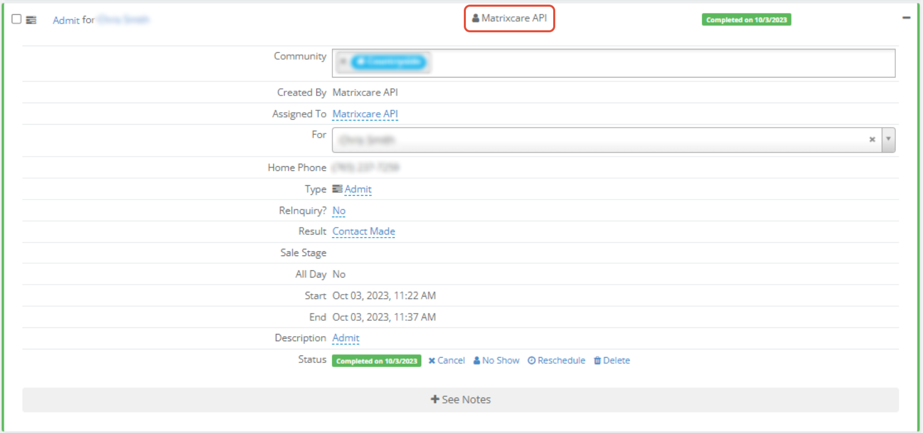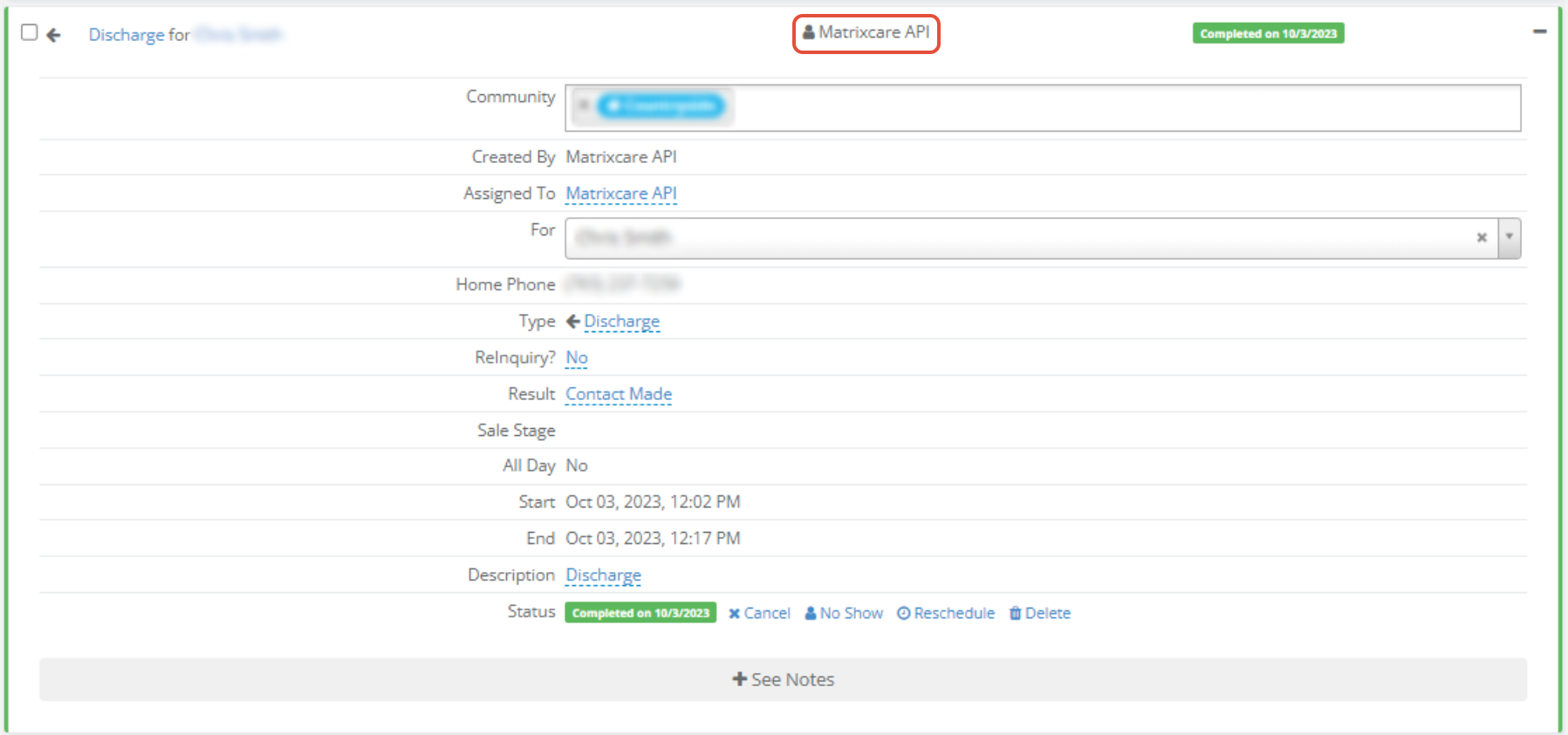 NOTE: Contact push requires enhanced integration with MatrixCare. Please contact your Aline CSM if you would like to add this to a prior existing integration.