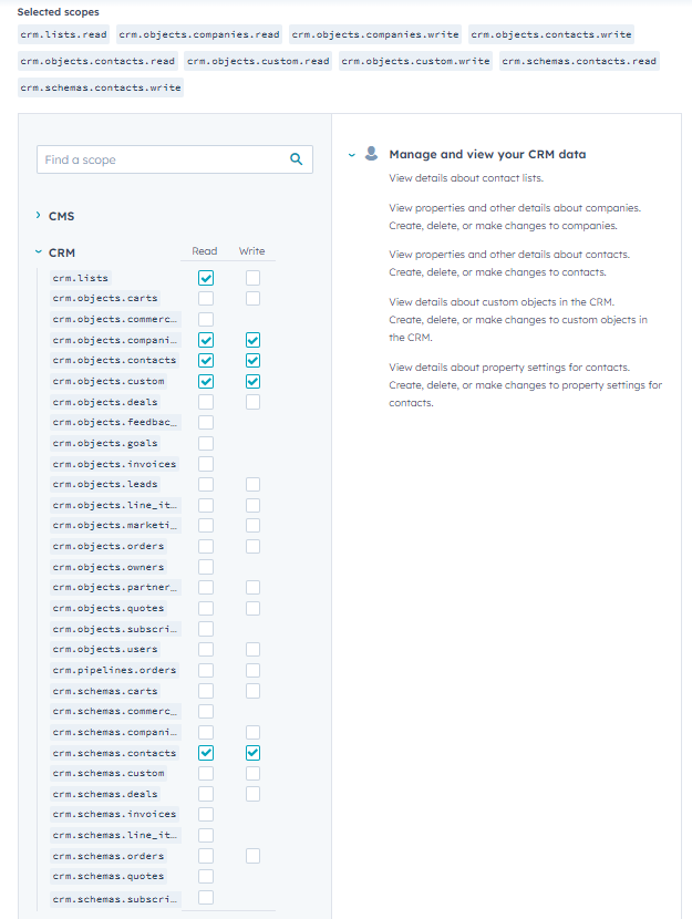 5. Click Scopes tab > Grant Read and Write permissions to the following Scopes
