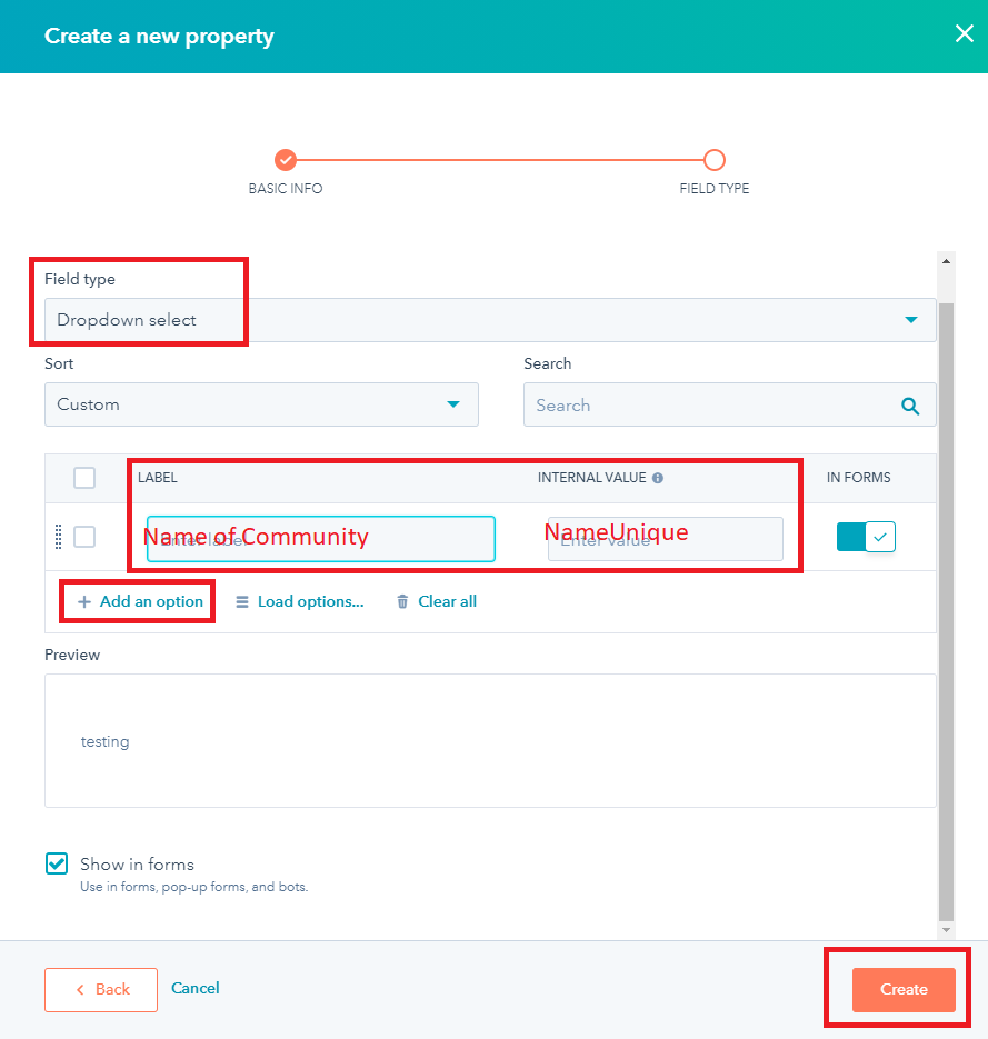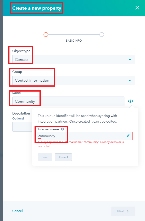 If it doesn't exist already, Setup the "community" Property for Contacts/Contact Information inside HubSpot (Reference -