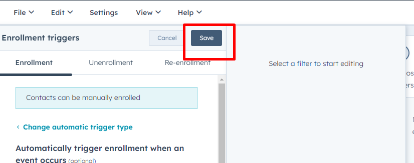 7. Now that “Has completed: Form Submission” is added on the Enrollment > Group 1, Click Save.