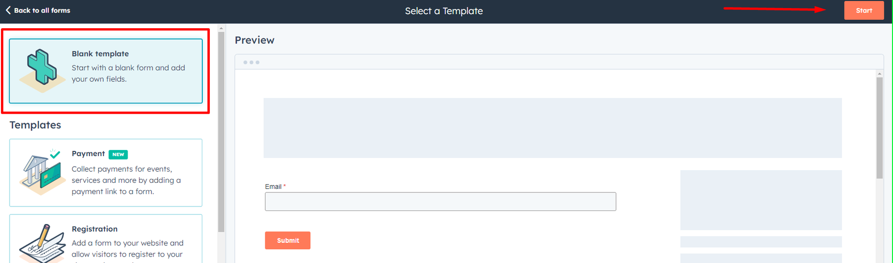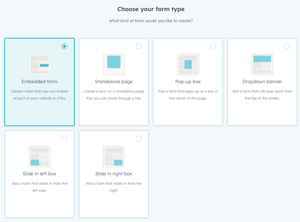 3. Choose your form type(Embedded Form), then Click “Next” in top right corner