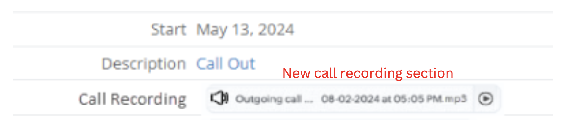 a. After a call has been completed and the call was recorded, the will now show in the Call Out activity under "Call Recording" section
