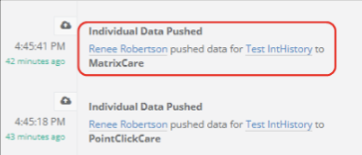 b. After pushing a record from the CRM, there will now be history of the push within the history sidebar