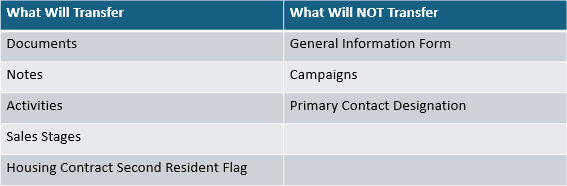 NOTE: Outside of Form Data, several Case Modules will by design transfer to the New Prospect. However, Individual Data will not. See below for a list of what will/will not transfer