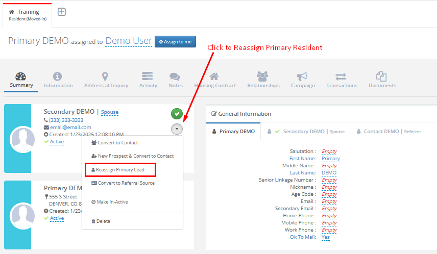 - Selected Forms and data are maintained and visible on the new Primary Resident