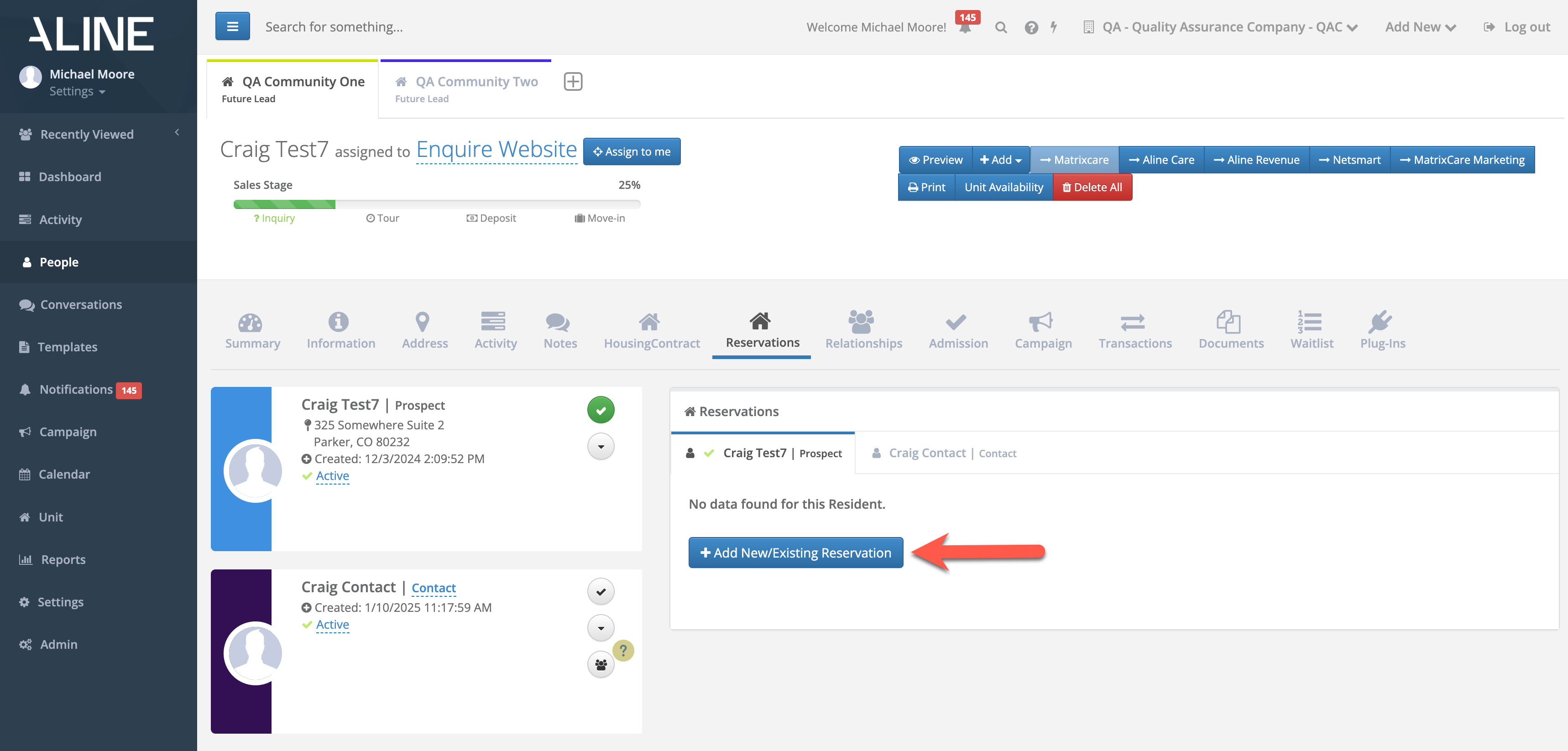 In addition, the Reservation Module will display a comprehensive reservation history along with census history for each resident, providing a complete view of their reservation history and occupancy records.
