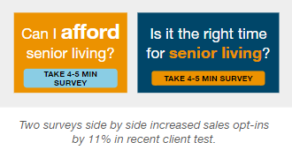 Highlight the survey in your newsletter, blog posts, and social media channels, framing it as a helpful resource for prospects starting their financial planning for senior living.