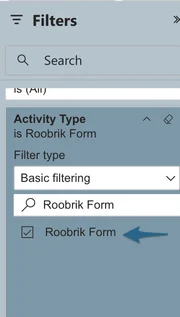 - Select "Roobrik Form" from the Activity Type filter.