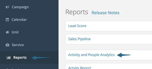 - From the list of reports, select the"Activity and People Analytics" report.