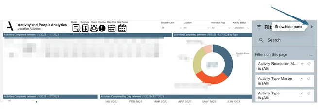 - By default, the Filter panel may appear collapsed. To expand it, click on the arrow.