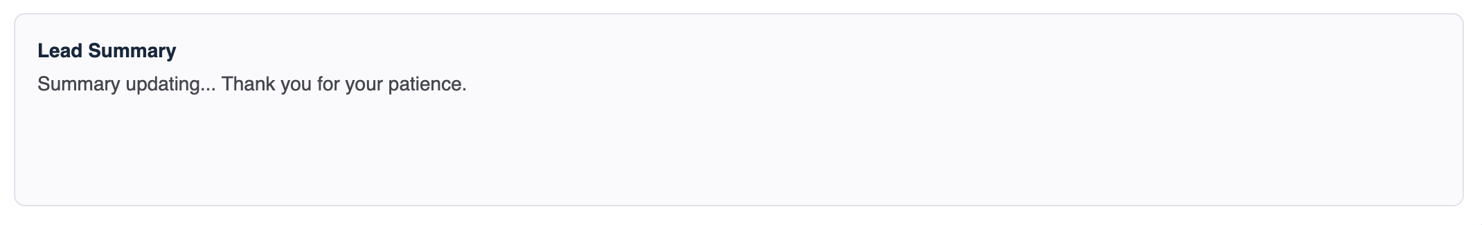 Step 1: Navigate to any Prospect Profile and scroll to view the Lead Summary. Upon first accessing the profile, it will let you know that the summary is updating: