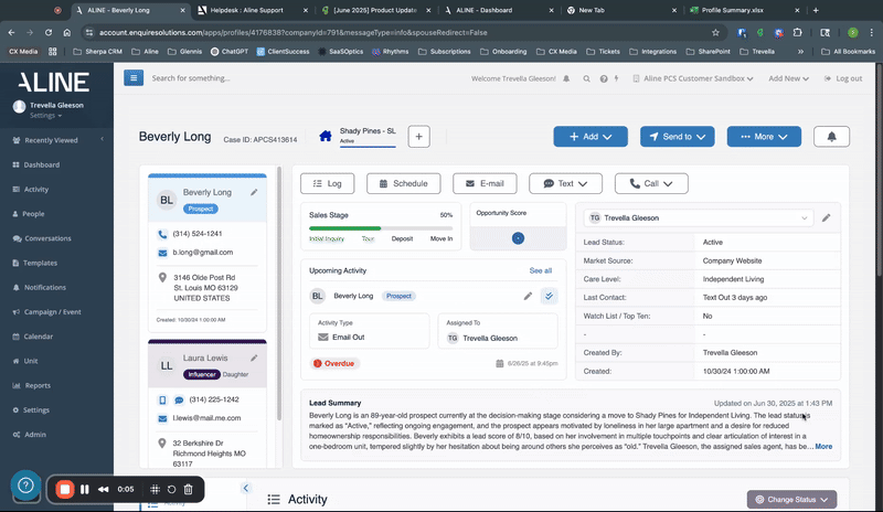 - The Lead Summary, located on the new Prospect Profile UI (now available in Preview or Default mode), provides an AI-generated overview of contact details, recent activity, and upcoming next steps
