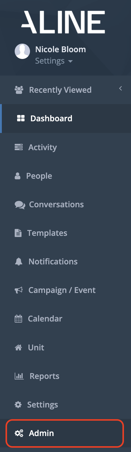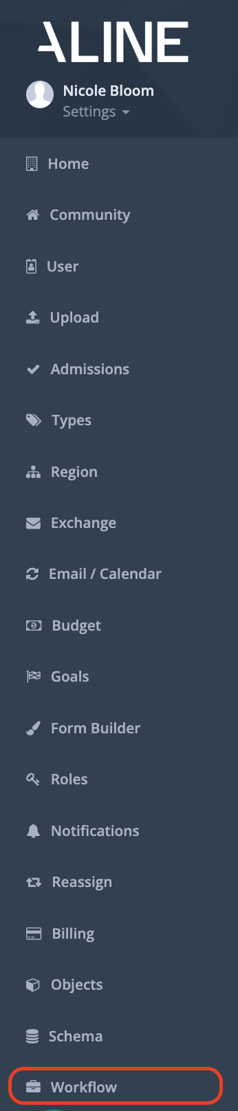 Step 1: Navigate to Admin on the left-hand navigational bar, then click Workflow: