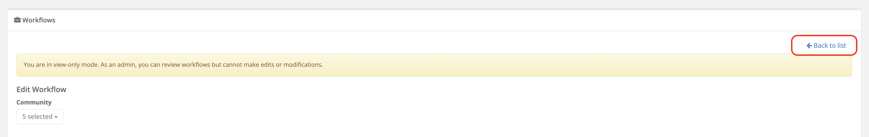 Step 5: To return to the list of workflows, select Back to List in the upper right-hand corner of the screen.