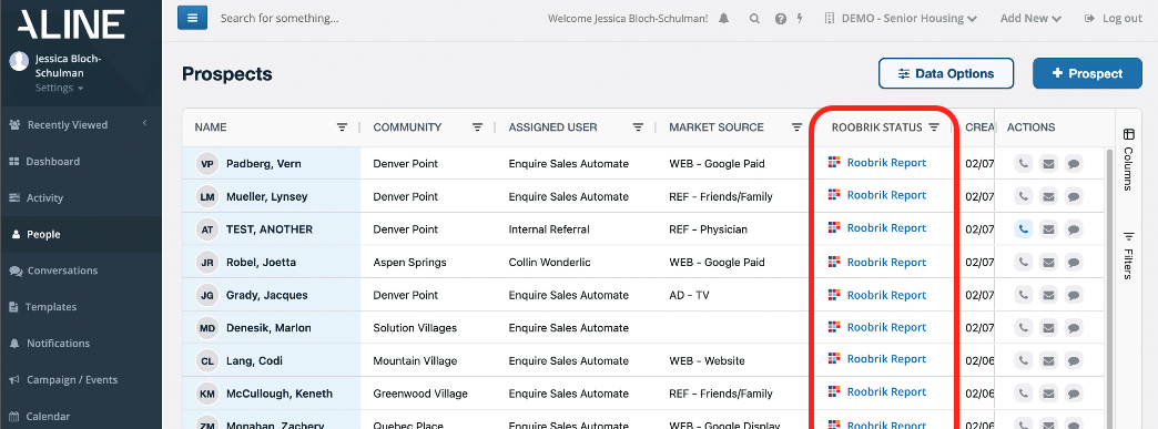 - On the Peoples List Page, there will now be a Roobrik Status column for easier access to the Roobrik Report tab on the prospect profile