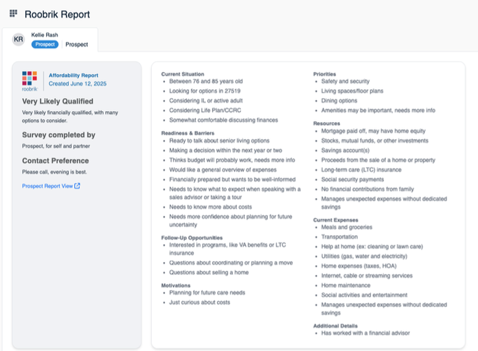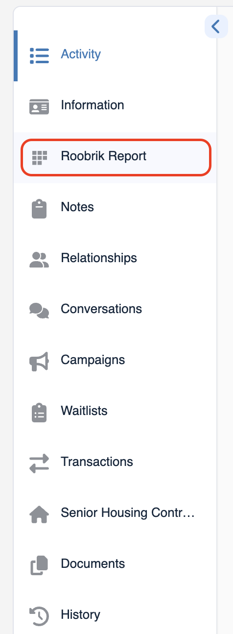 - If you are utilizing the Roobrik Integration, you will now see a new report tab in the new Prospect Profile UI (now available in Preview or Default mode). If utilizing the original profile still, the report details will be accessible on the Roobrik form.