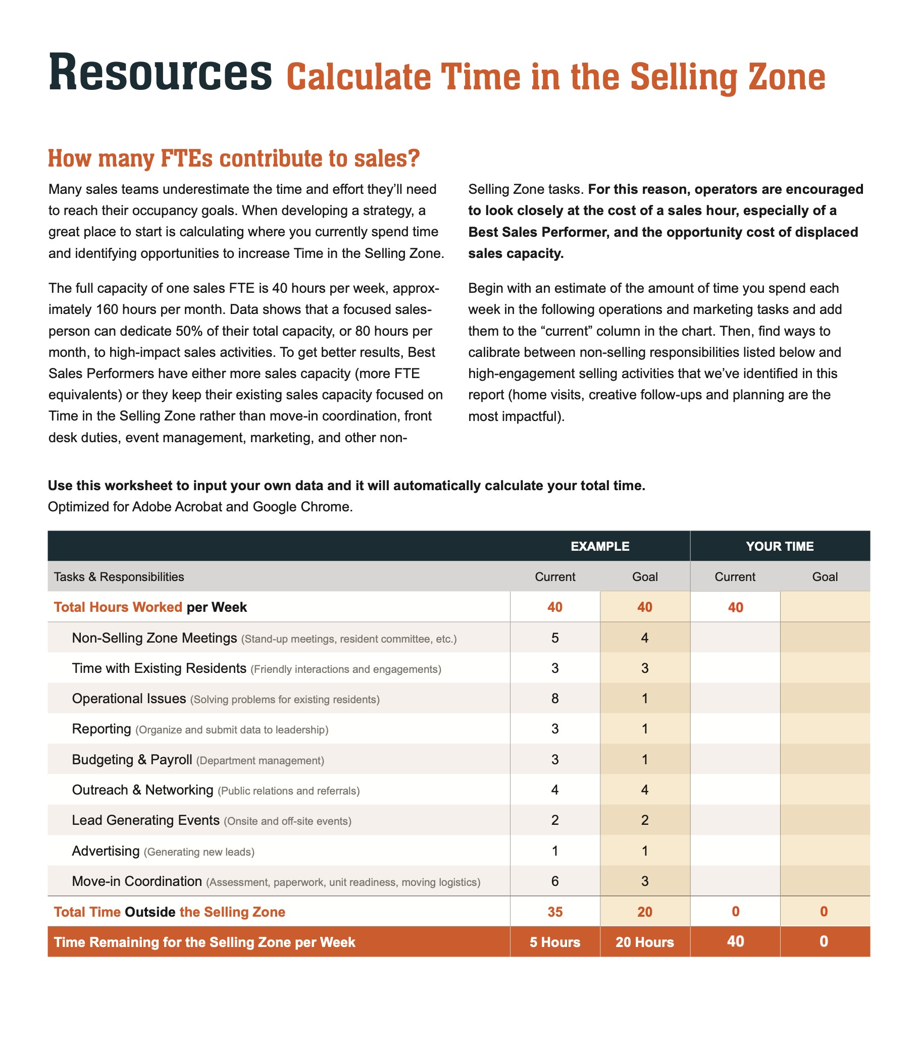Calculate Time in the Selling Zone ![]() | Sales Enablement Review Worksheet ![]() |