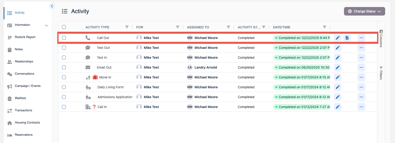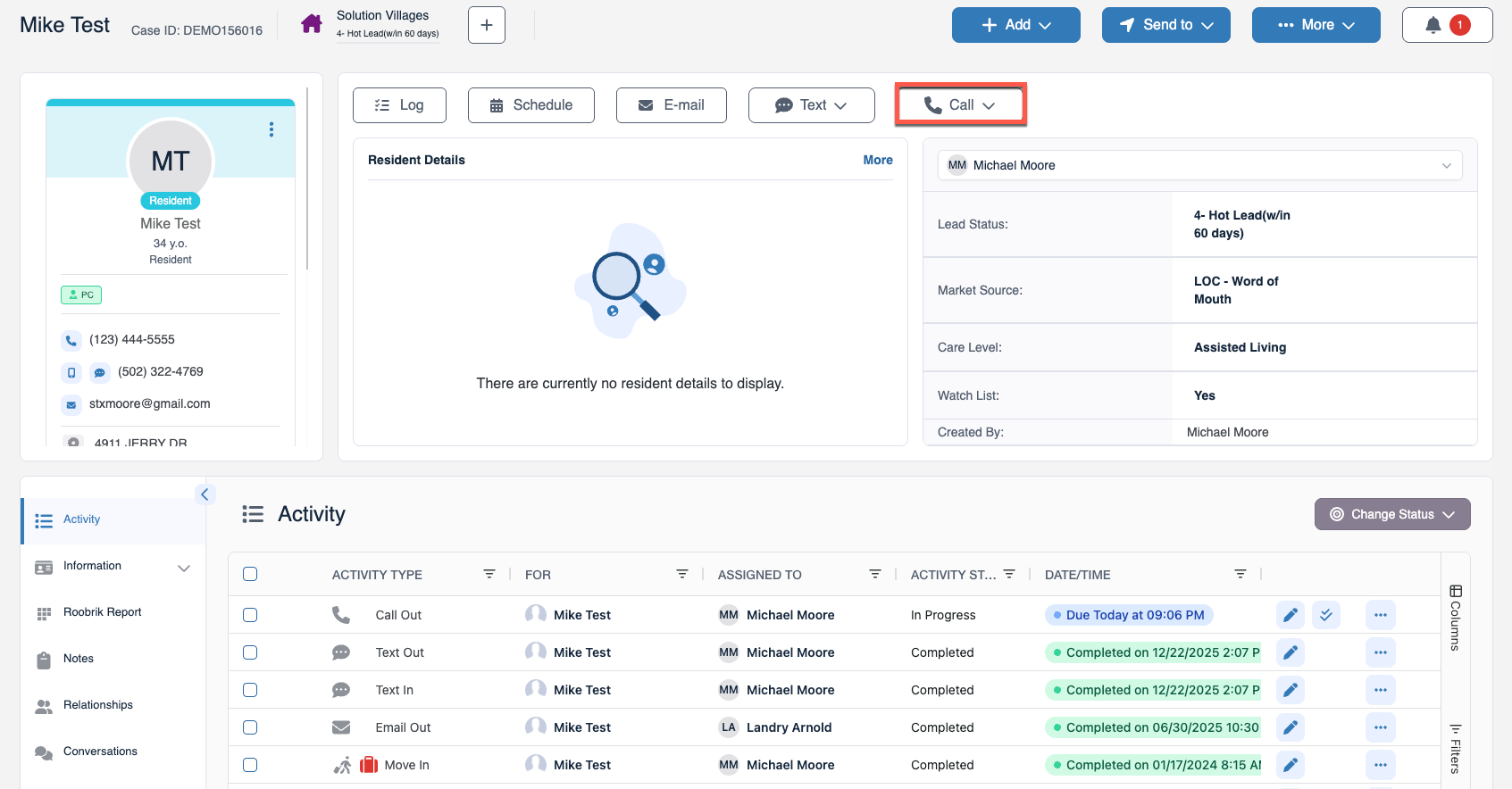 Step 5: The completed phone call activity will now automatically save in the prospect's activity panel.