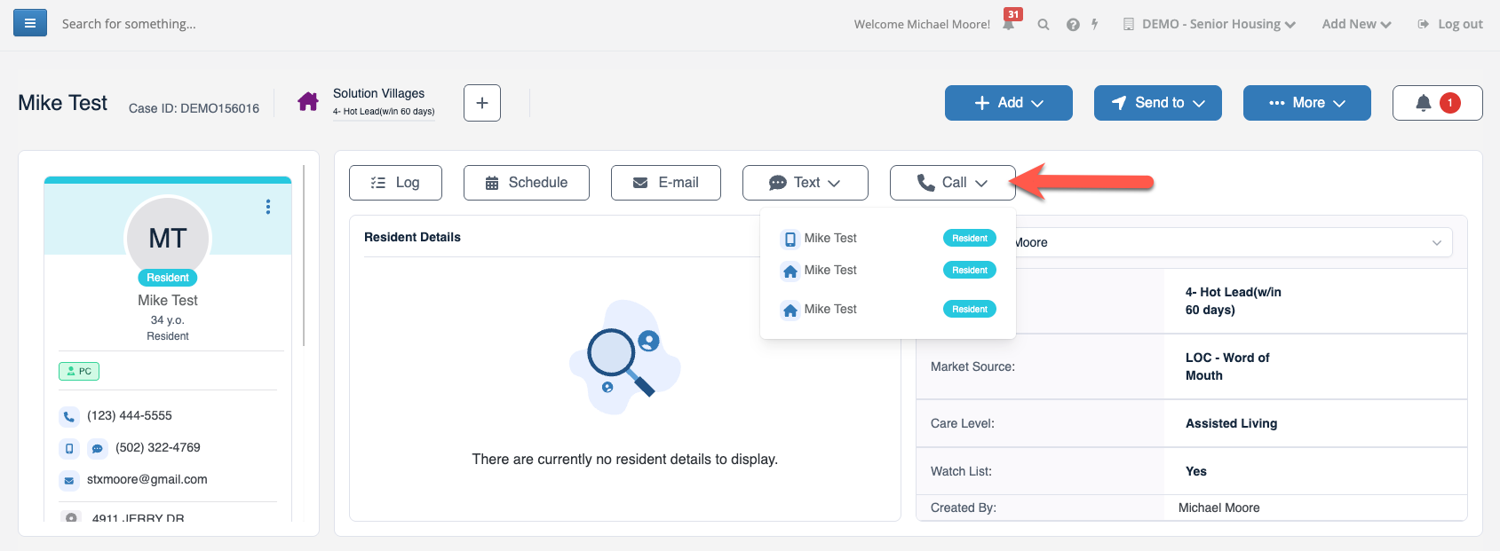 Step 1: Select your desired prospect. At the top of the prospect profile, you'll see a Call button listed.