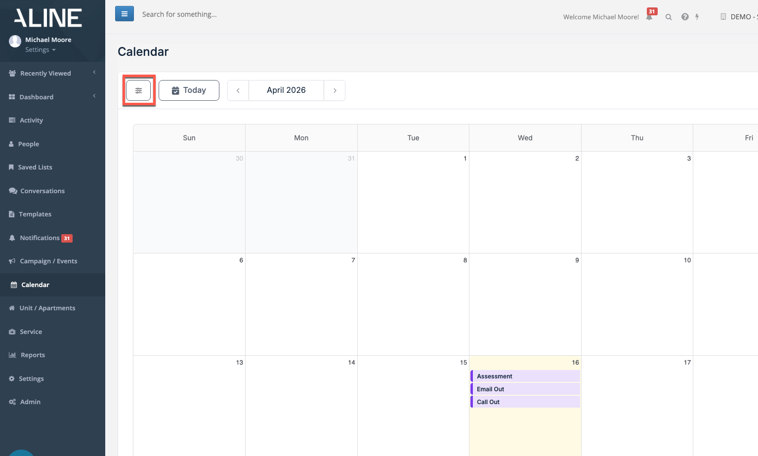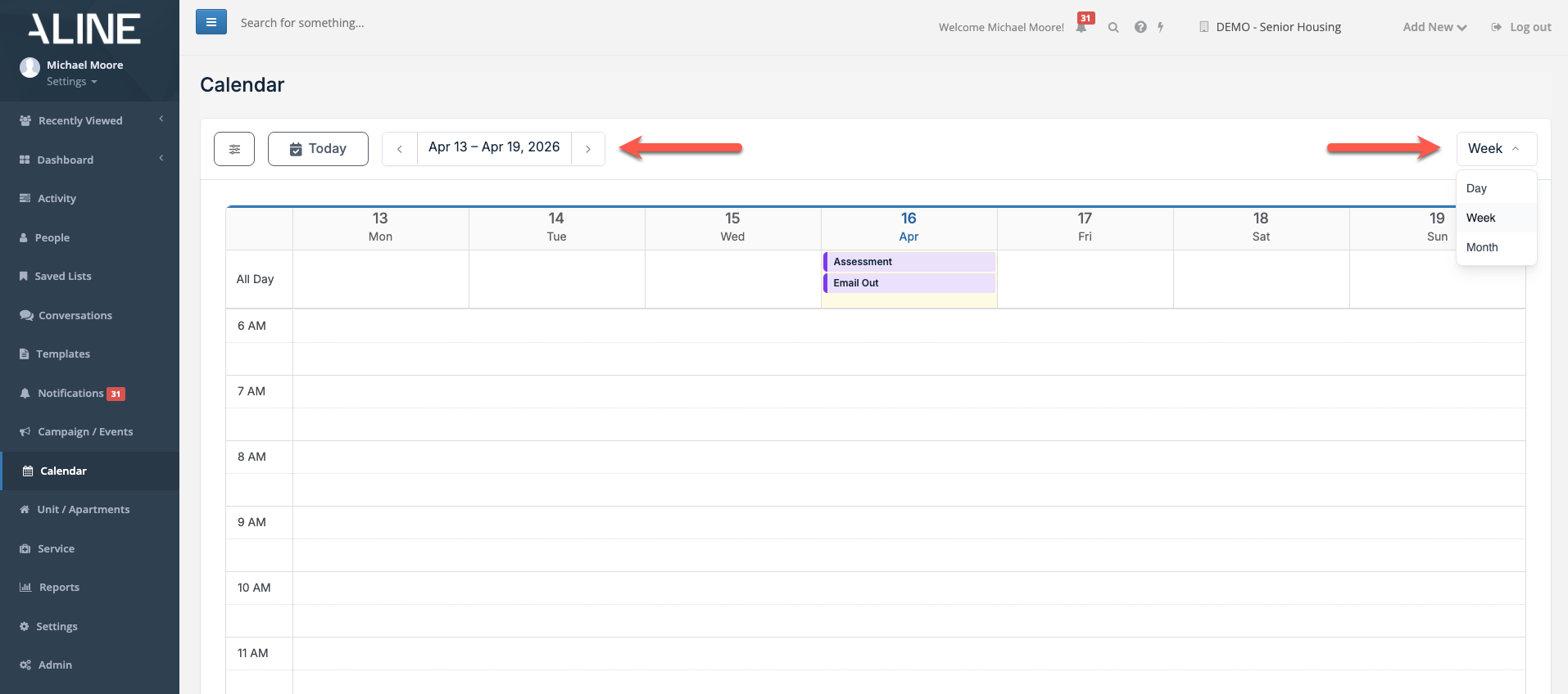 In this article, we'll cover how to use your Aline CRM Calendar to manage your prospect's, contact's, and referral source's activities. Included topics are calendar navigation, filtering the calendar, and working with calendar activities.
